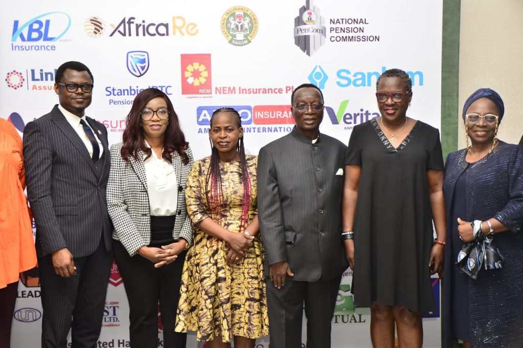 L-R: Akinsola Adeseun, Zonal Head, South West Zonal Office, National Pension Commission (PenCom), representing Omolola Bridget Oloworaran, Acting Director-General, PenCom; Nike Bajomo, Executive Director, Business Development at Stanbic IBTC Pension Managers Ltd; Nkechi Naeche-Esezobor, Chairperson, Nigerian Association of Insurance and Pension Editors (NAIPE); Fola Daniel, former Commissioner for Insurance and former Managing Director/CEO, FBS Reinsurance Limited, Chairman of occasion; Idu Okwuosa, former Managing Director/CEO, Access Pensions; Yetunde Ilori, President/Chairman of Council, Chartered Insurance Institute of Nigeria (CIIN) at the 2024 NAIPE national Insurance and Pension Conference held in Lagos on Tuesday, October 8, 2024.